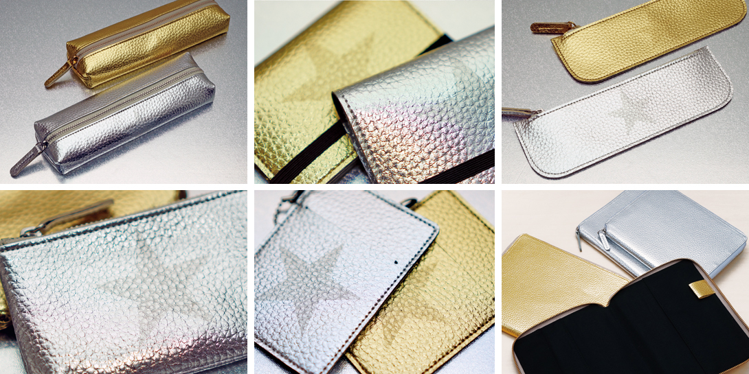 インパクトのあるシルバーとゴールドの輝きと独特のシボ感を持った合皮素材を用いたSILVER & GOLD。